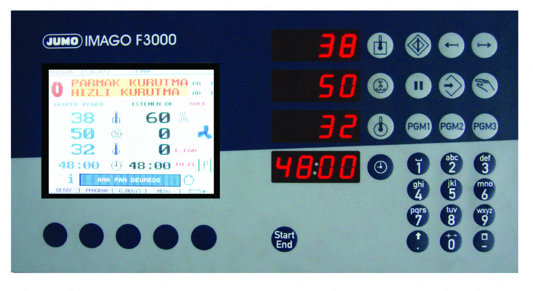 Jumo F 3000 ( kumanda paneli ) cihazı kullanılır